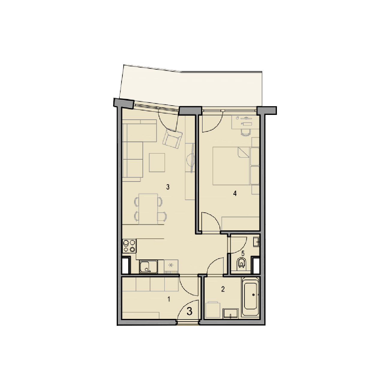 byt B2.12, 2-izbový