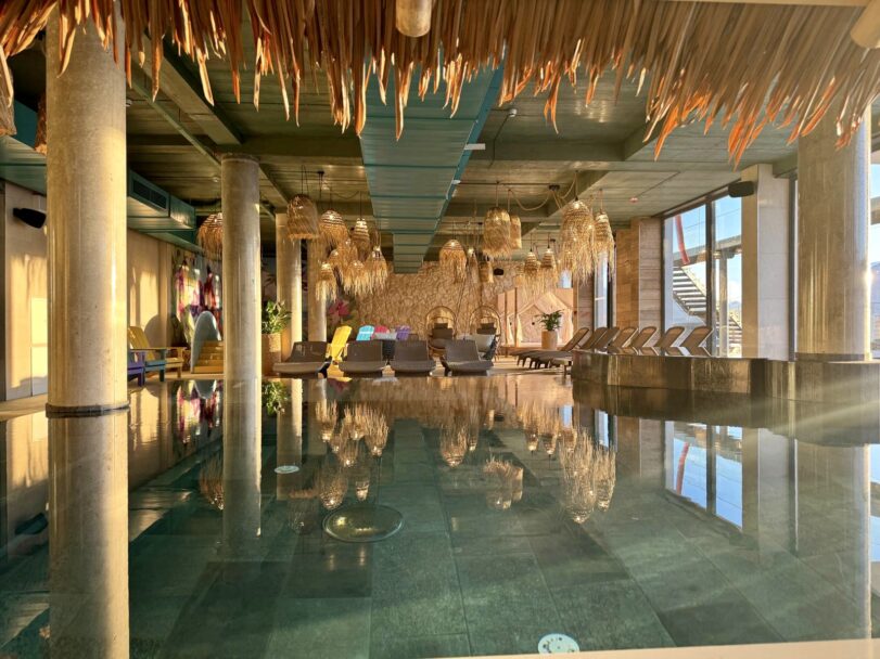 - Exteriér: relaxačný bazén, ochladzovací bazén, vírivky a kúpele, horská ceremoniálna sauna s priamym vstupom do jazera, bylinková bio, panoramatická a soľná sauna, tepidárium, ochladzovacie jazero s oddychovými a relaxačnými kójami