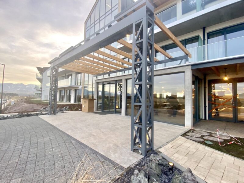 - každý apartmán má celostenové veľkoplošné okná s priestrannými terasami alebo balkónmi s výhľadom na hory